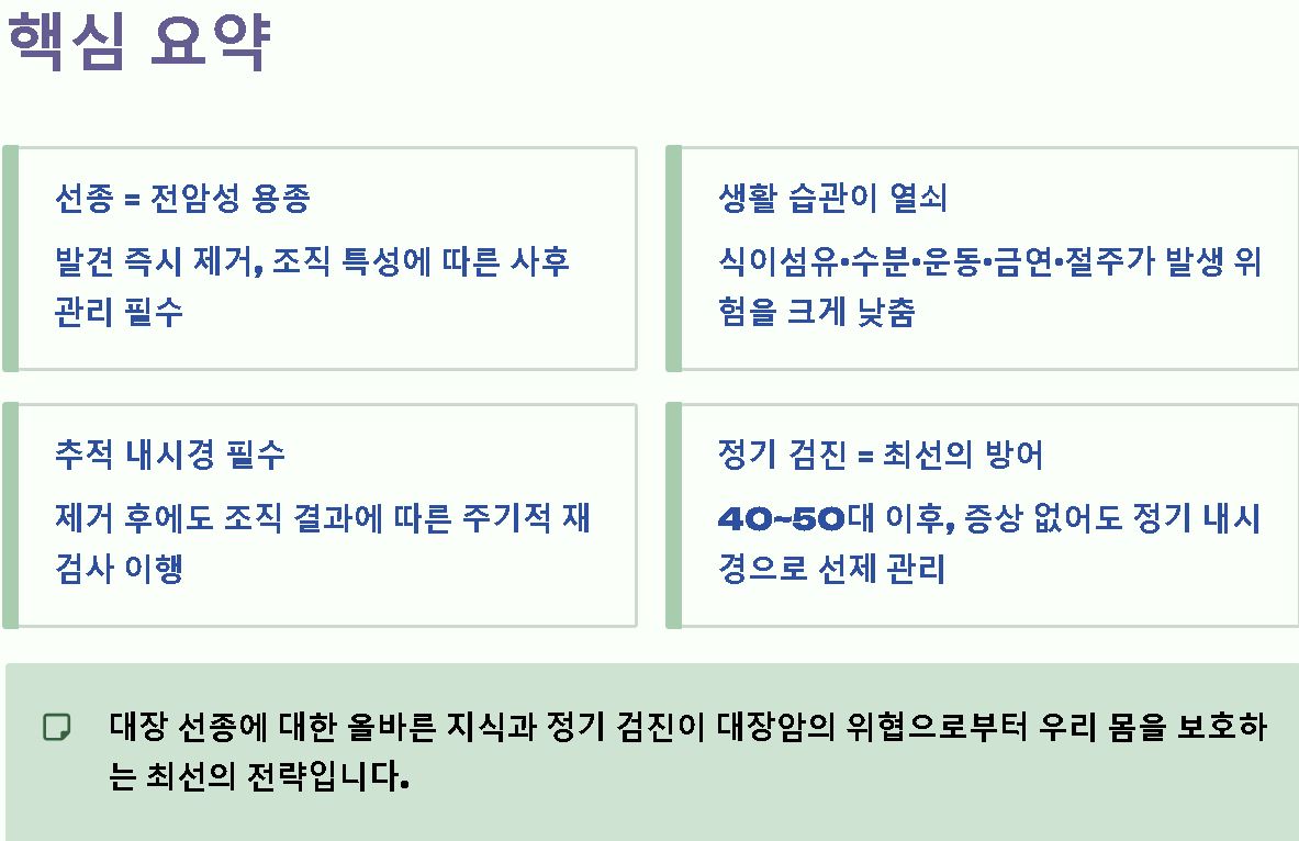 - · 국립암센터: 대장암의 전구 병변으로서의 대장 선종 이해와 관리 리포트