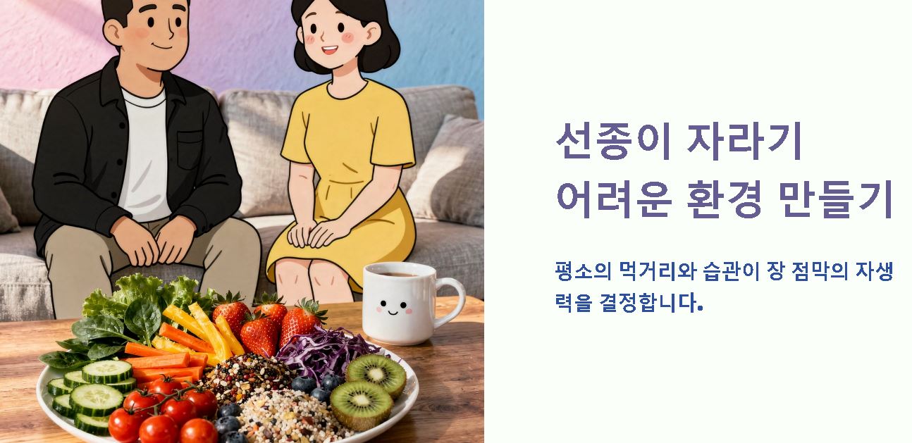 선종이 생기기 어려운 환경을 만드는 것은 결국 평소의 먹거리와 습관에 달려 있습니다. 장내 유익균 활성화 관리와 신선한 영양 공급은 대장 점막의 자생력을 높이고 불필요한 세포 증식 방지 관리 지원에 기여합니다.