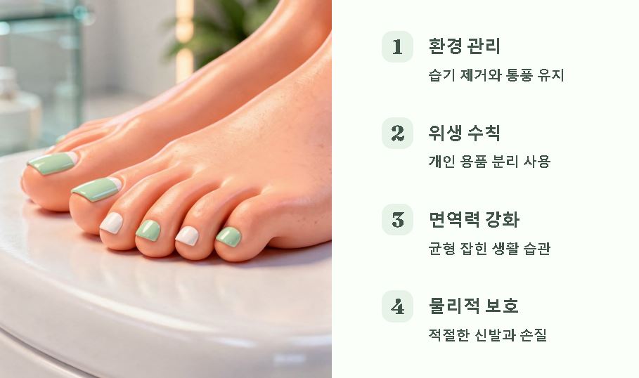 - ✅ 환경 요인 확인: 장시간 통풍이 안 되는 신발을 신거나 습한 환경에 노출되는지 체크