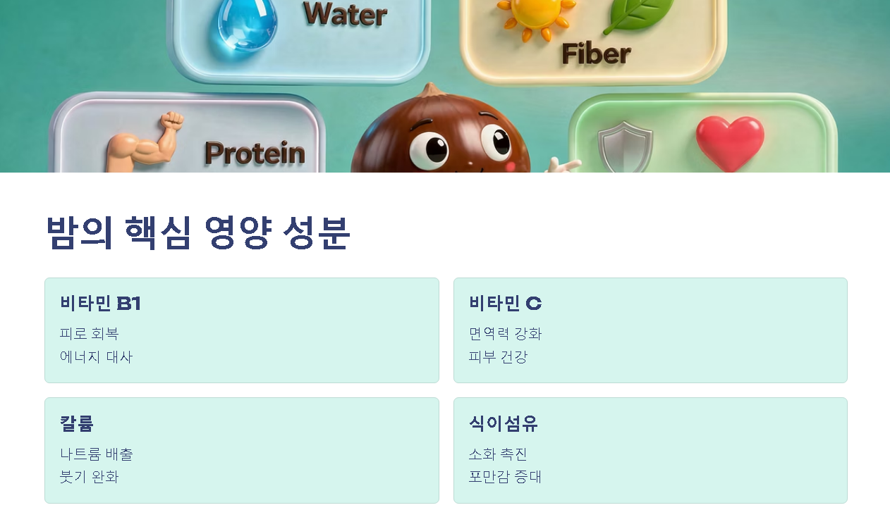 개인의 체질과 소화 능력에 맞춰 적절한 양을 지키는 것이 밤의 효능을 온전히 누리는 지혜입니다.