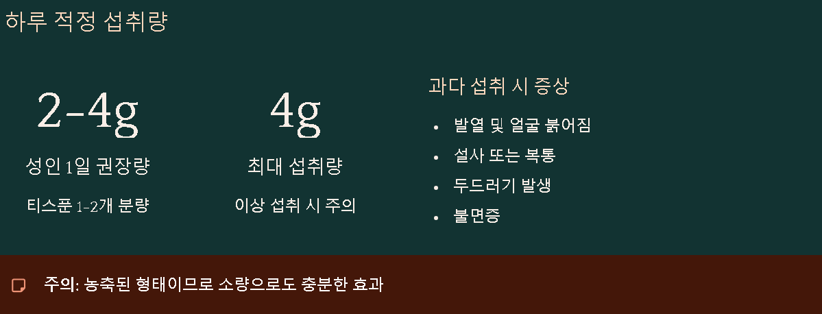 생강가루는 농축된 형태이므로 소량으로도 충분한 효과를 발휘합니다. 과하게 먹을 경우 체질에 따라 발열, 설사, 두드러기 등의 증상이 나타날 수 있으므로 욕심내지 않는 것이 중요합니다.