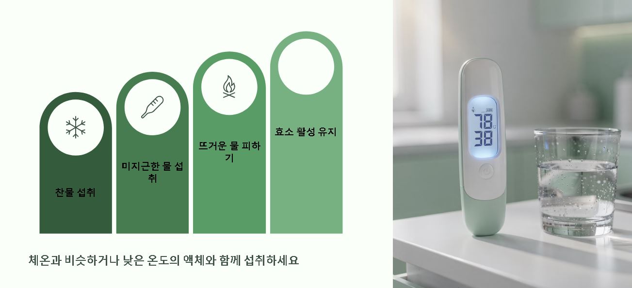 - ✅ 온도 확인: 효소의 활성 유지를 위해 미지근한 물과 함께 마시는가?