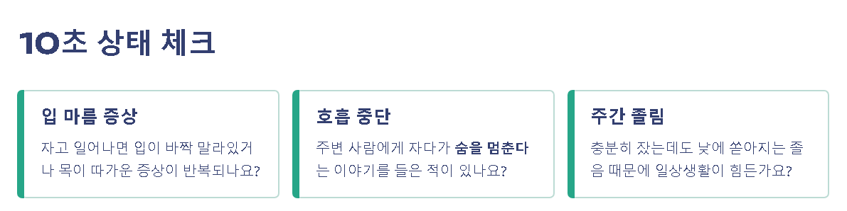 - ✅ 주변 사람에게 자다가 숨을 멈춘다는 이야기를 들은 적이 있나요?